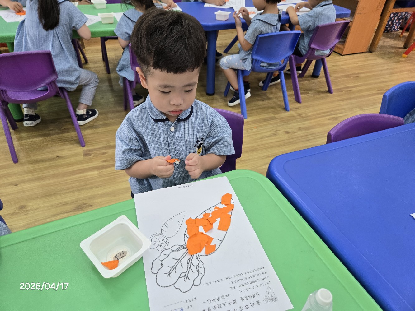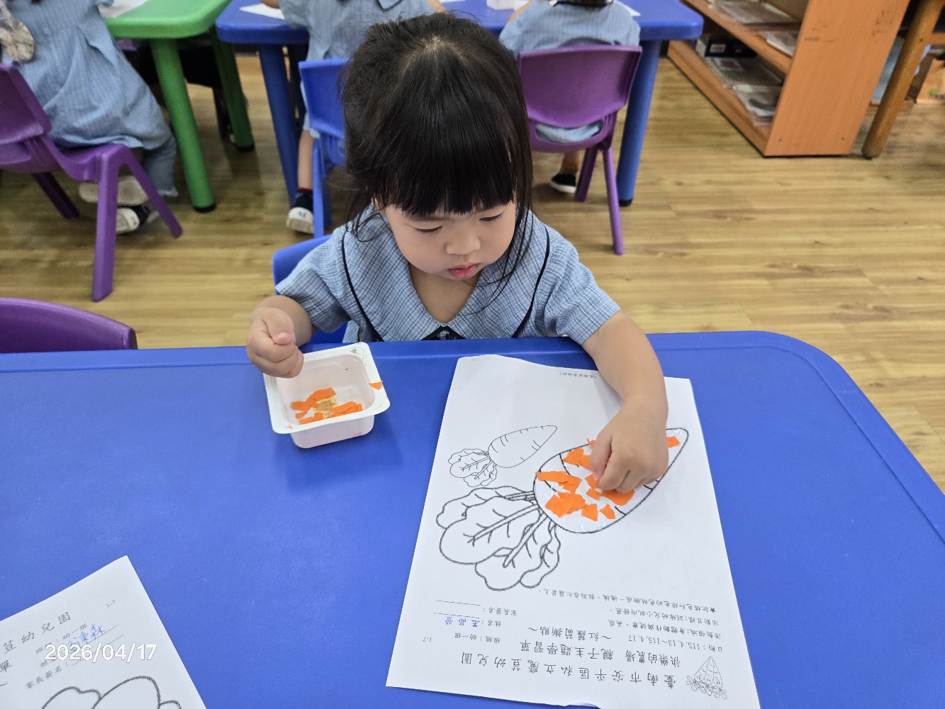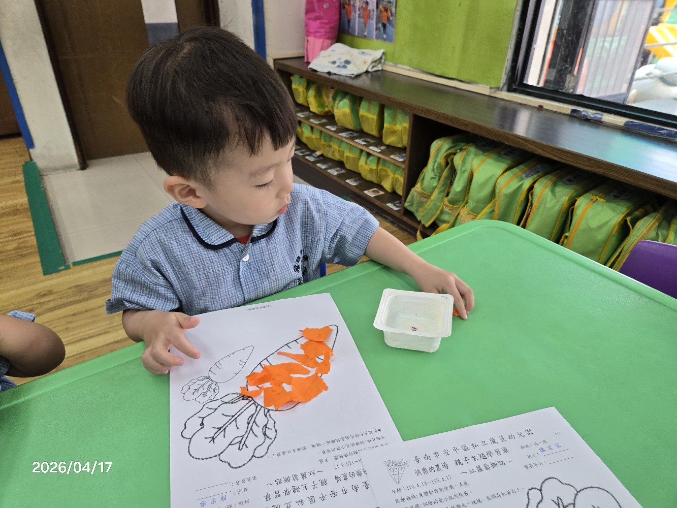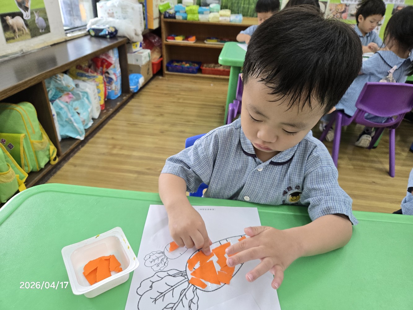 相簿名稱: 115.4.17幼一班:〔創作~紅蘿蔔撕貼〕