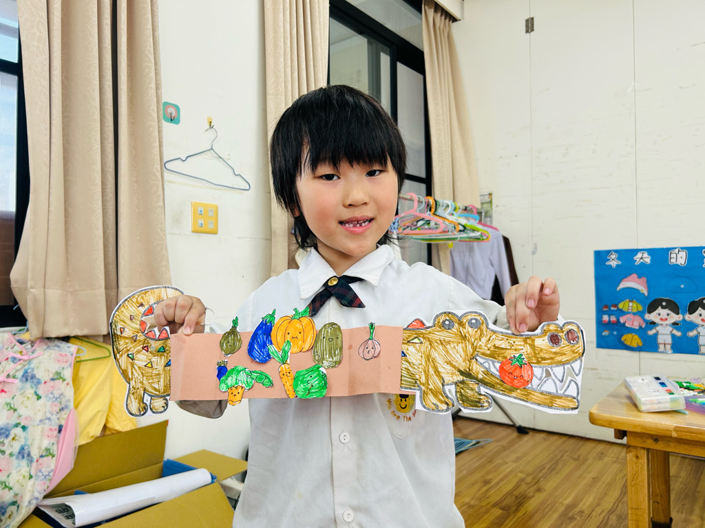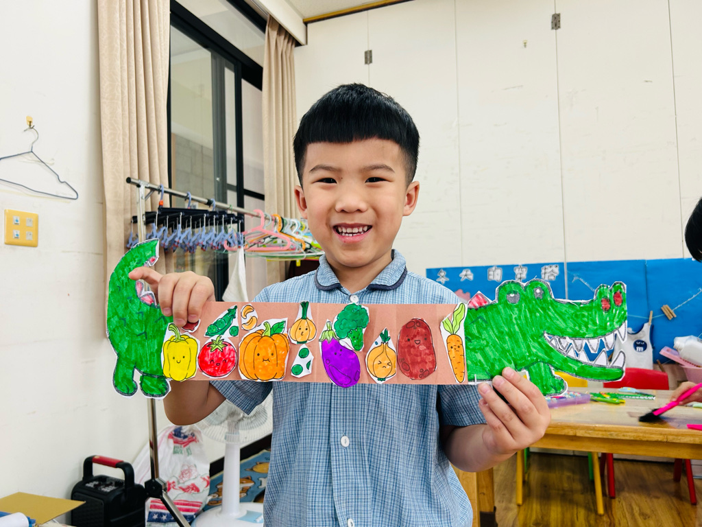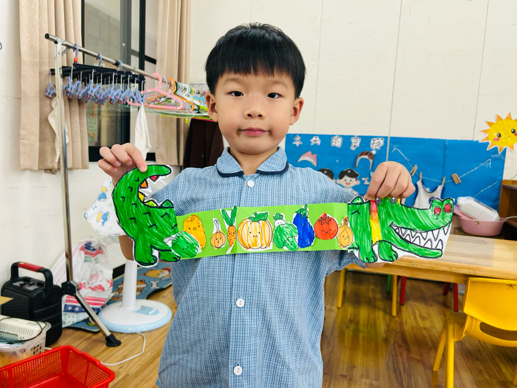相簿名稱: 大二班 主題藝術創作:愛吃蔬菜的鱷魚🐊🥬