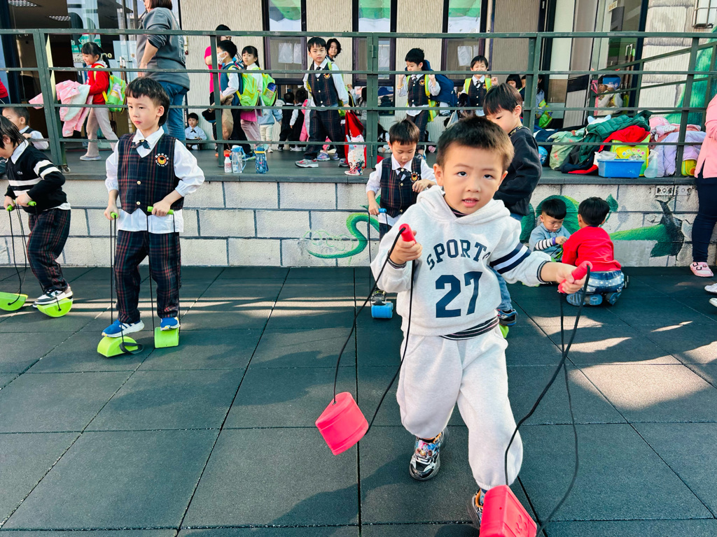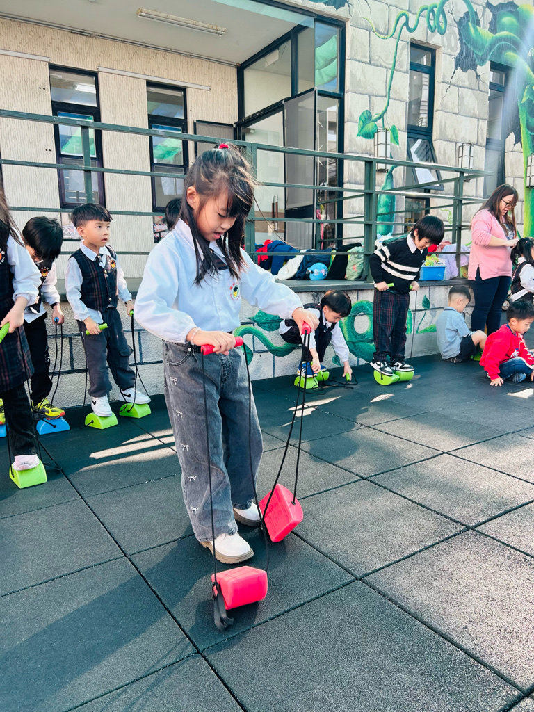 相簿名稱: 大二班 本週(0309-0313)大肌肉💪:踩高蹺🦶