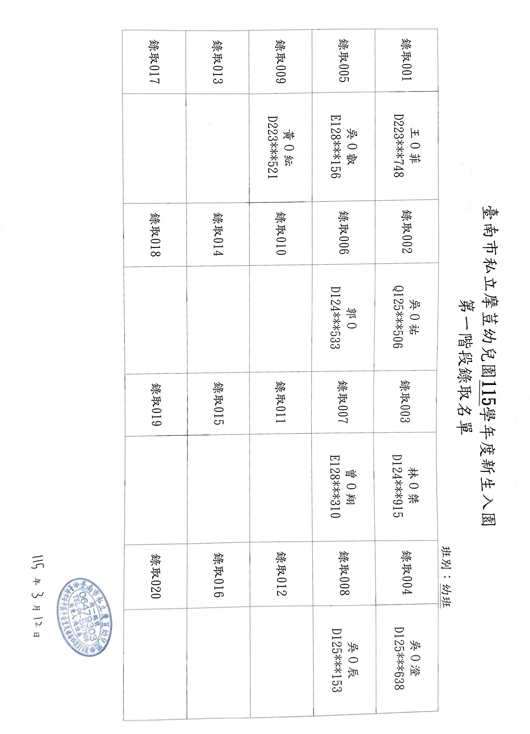 114學年度招生第一階段名單
