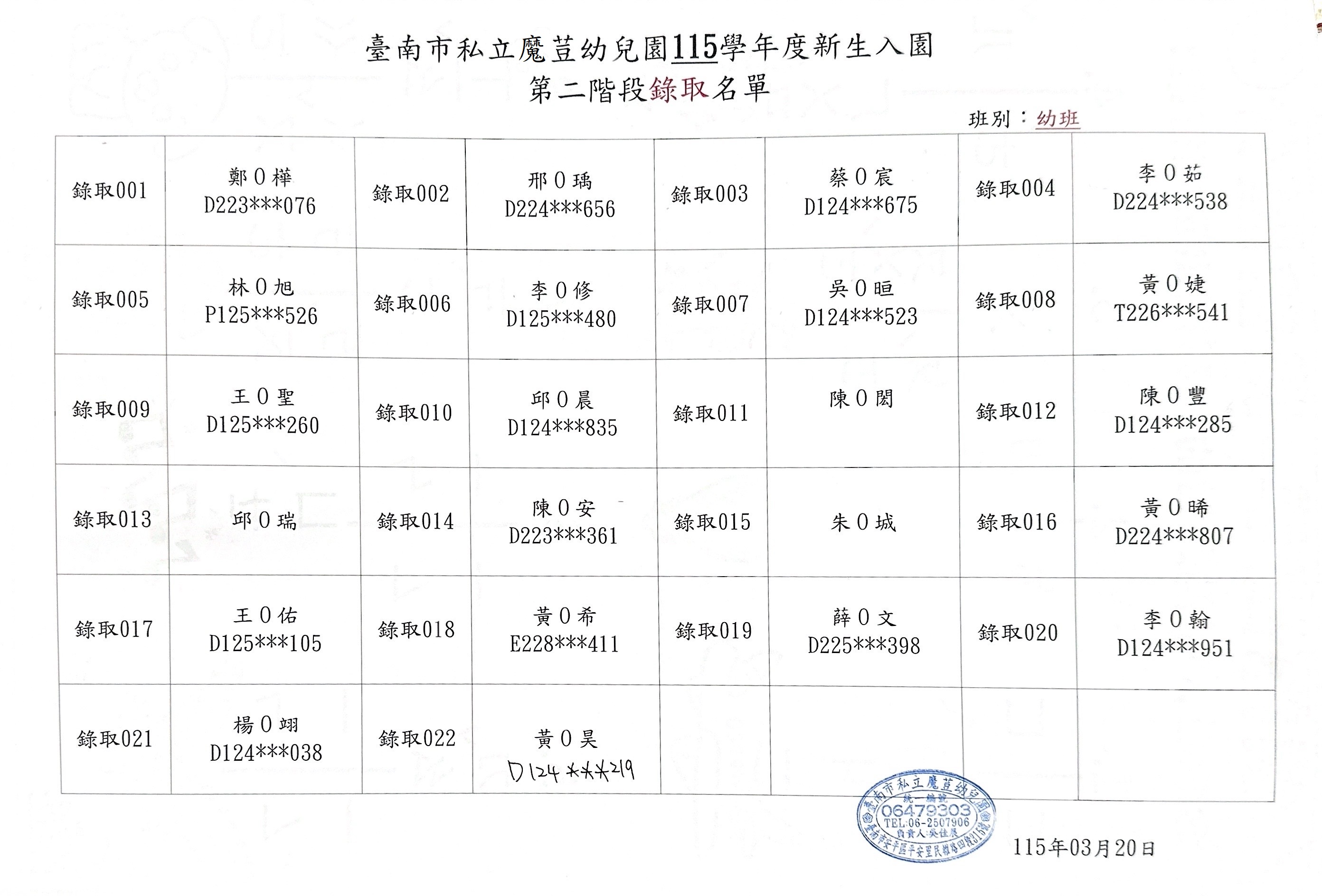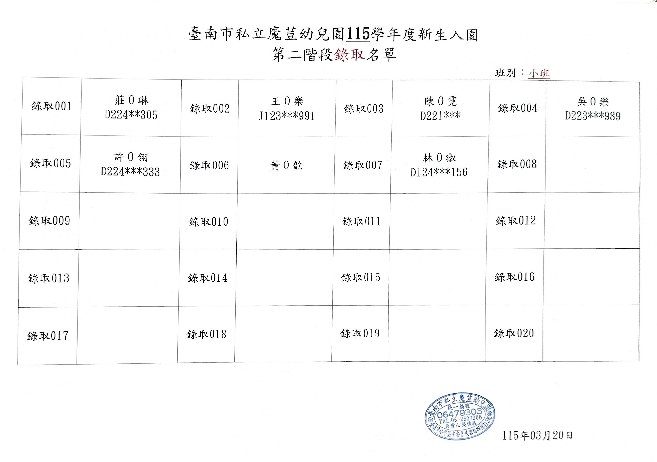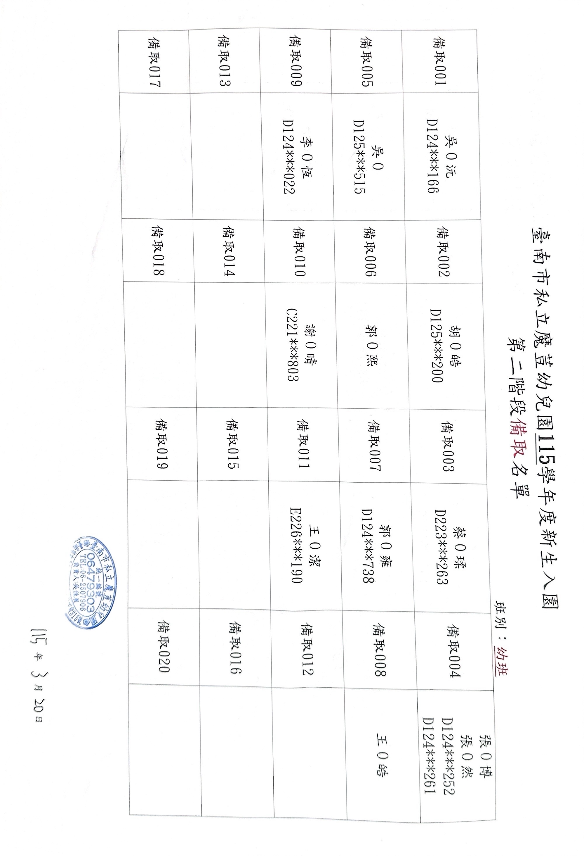 115學年度招生第二階段正取&備取名單